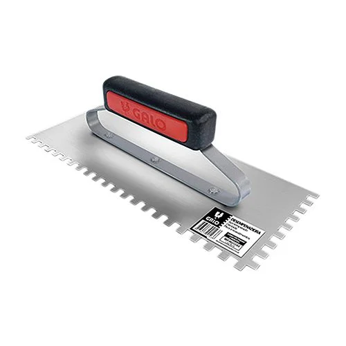 INDICAÇÃO DE USO: As desempenadeiras dentadas são muito resistentes e flexíveis. Indicadas para aplicação de argamassas, permitem um excelente assentamento de revestimentos cerâmicos, porcelanatos, pastilhas, mármores e pedras em geral.