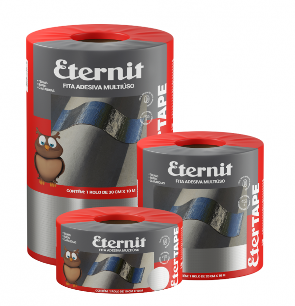 A Etertape é uma fita autoadesiva à base de asfalto com superfície aluminizada, indicada para reparos em telhas, rufos, calhas, dutos, tubos, barracas de camping e carrocerias baú, além de vedações e acabamentos em coberturas.