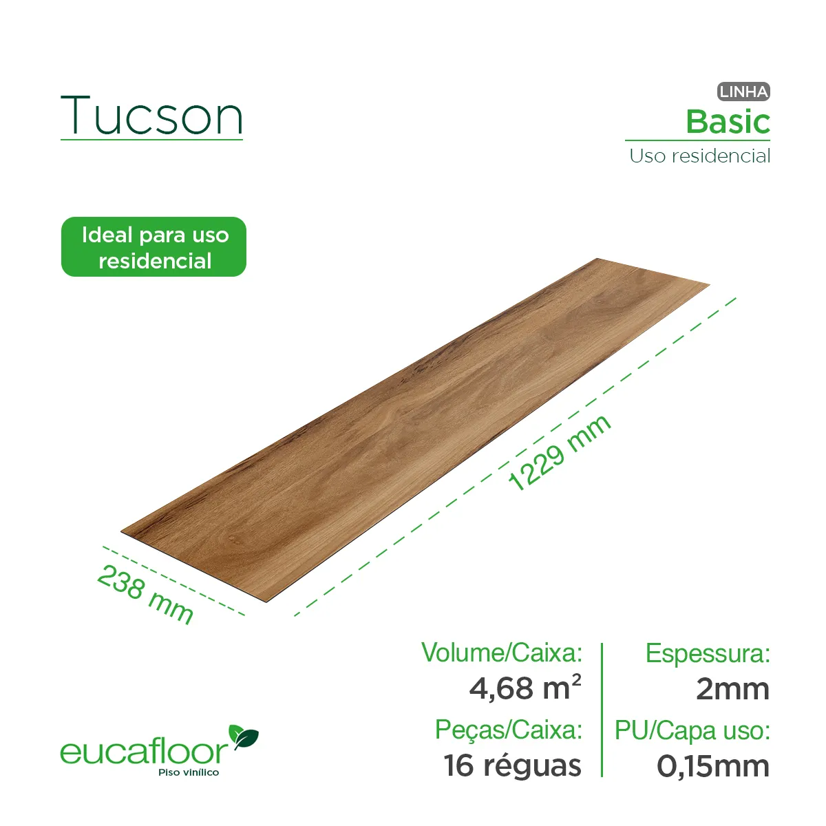 Pensando em elegância e funcionalidade, a Linha Basic foi projetada para ambientes residenciais com um toque de sofisticação. Com um design que se adapta aos mais diversos estilos, esse piso LVT oferece a perfeita combinação de beleza e praticidade. Ideal para quartos, salas e salas de jantar, sua superfície elegante proporciona conforto térmico e acústico. Com responsabilidade ambiental, é 100% reciclável, resistente a cupins e conta com a qualidade garantida da Eucatex, ideal para quem busca estilo e eficiência no dia a dia.